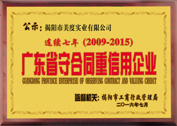 連續(xù)7年(2009-2015)廣東省守合同重信用企業(yè)