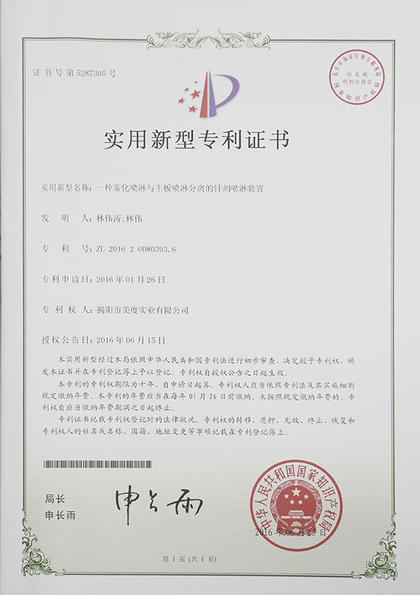 關(guān)于美度(專利證書)