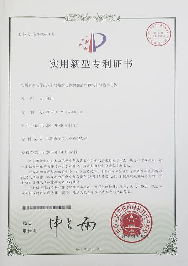 汽車散熱器芯體的加強片和汽車散熱器芯體(實用新型)