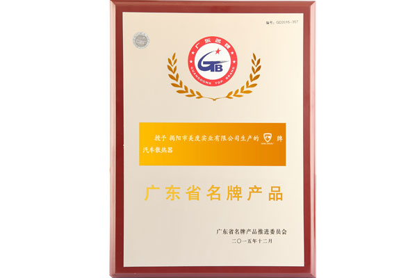 2016年1月29日,廣東省名牌戰(zhàn)略摔倒進委員會推出的“廣東省名牌產品”評選公告中,“加仕 SCOOL”牌汽車散熱器被評定為“廣東省名牌產品”。