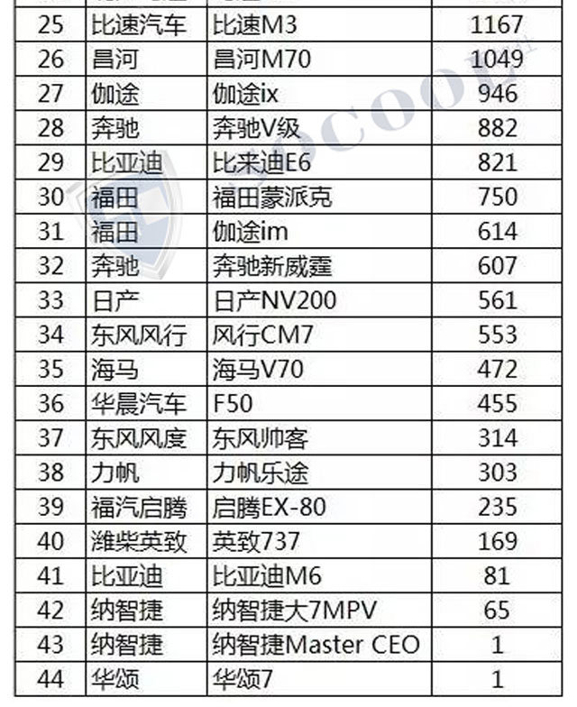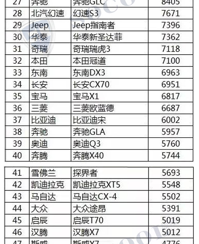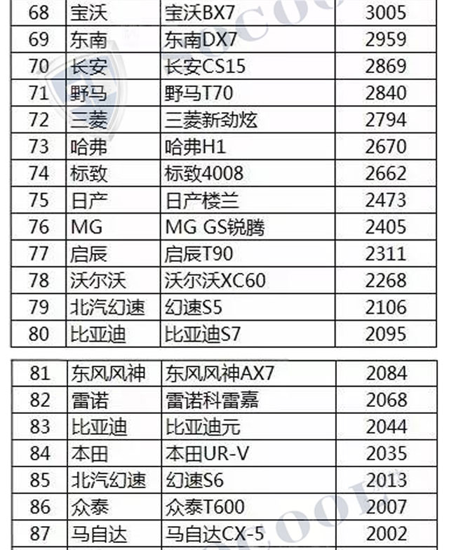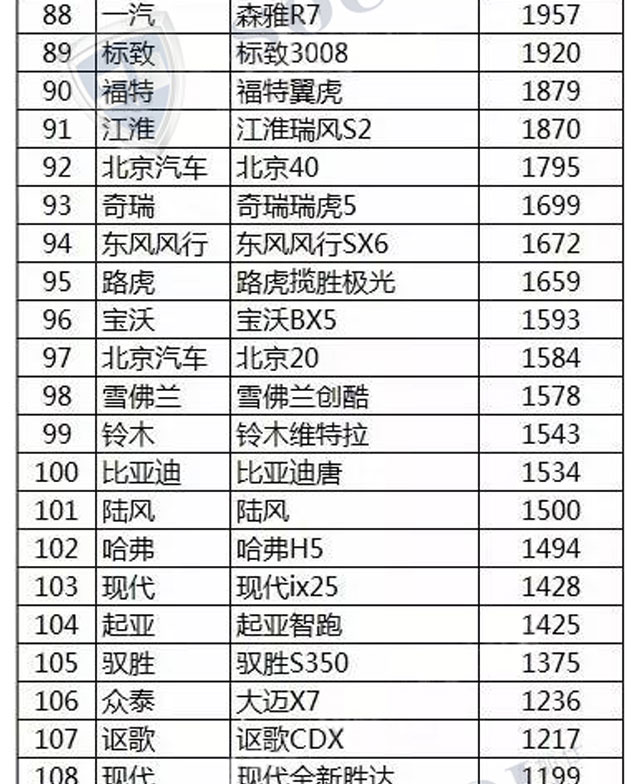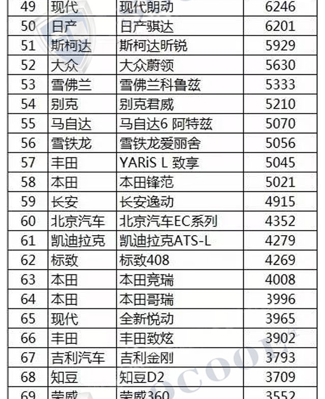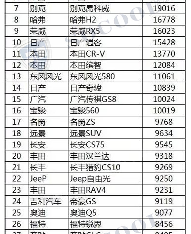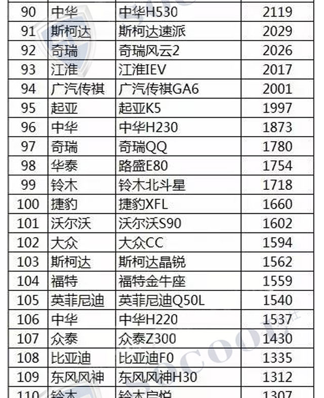 【銷量排行】2017年4月汽車銷量排行榜