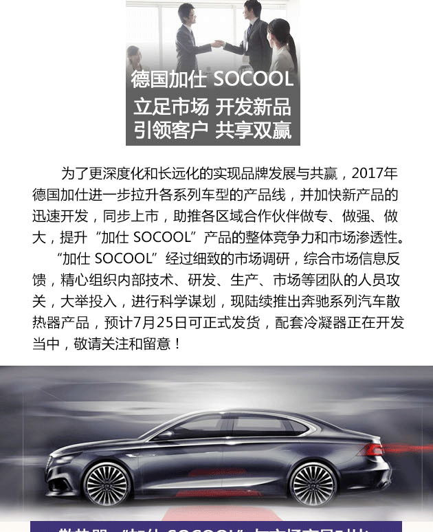 【新品快訊】“德國加仕 SOCOOL"奔馳系列5款散熱器隆重推出,敬請留意關(guān)注。!
